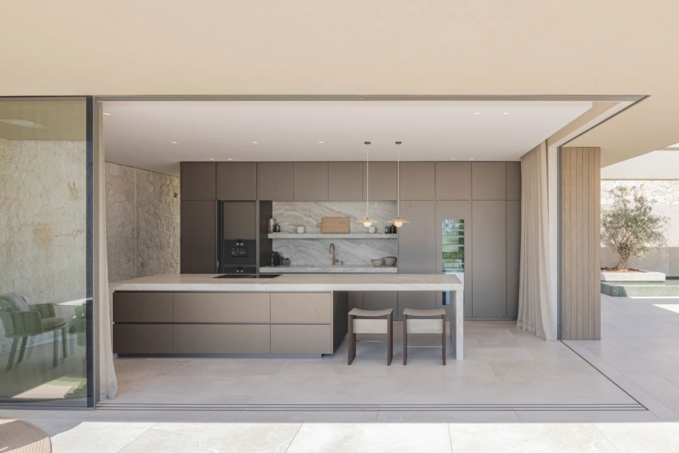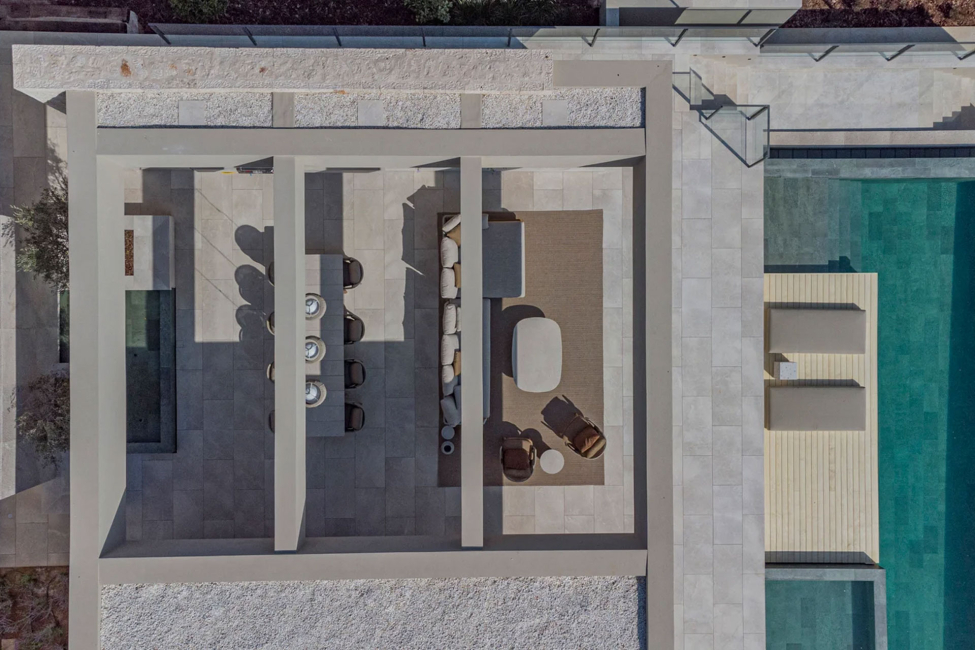 Hochwertige Materialien, sorgfältig ausgewählte Details und eine harmonische Verbindung von Innen- und Außenbereich schaffen eine Atmosphäre, die sowohl stilvoll als auch einladend ist. Der elegante Essbereich geht fließend in die Wohnlandschaft über und bietet direkten Zugang zur Terrasse mit Outdoor-Küche – ideal für gesellige Abende, private Empfänge oder entspannte Stunden im mediterranen Klima Mallorcas.