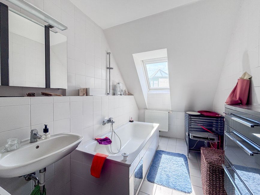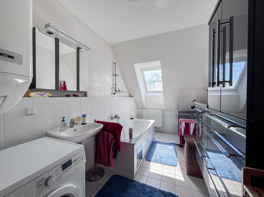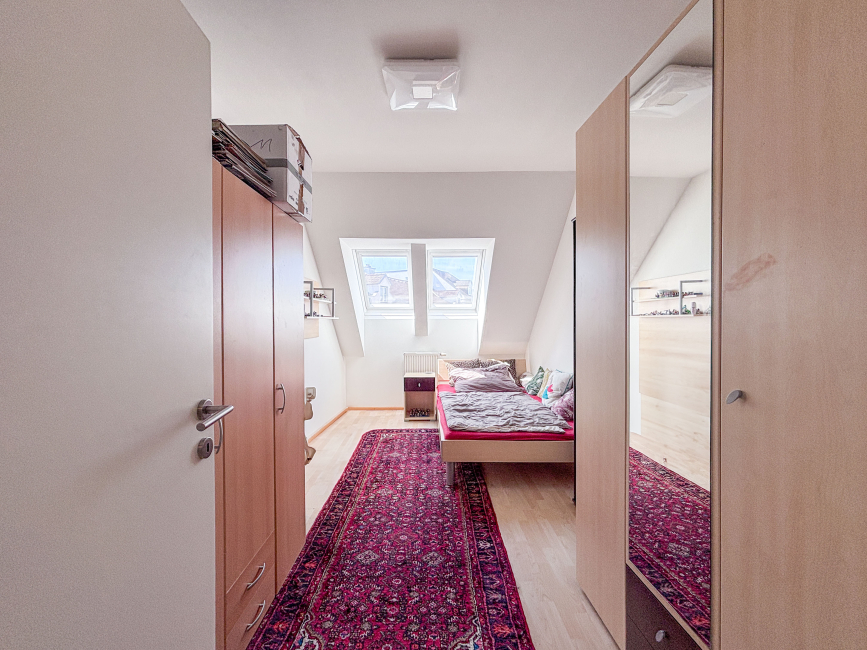 Die großzügig geschnittene Wohnung erstreckt sich über das 1. und 2. Dachgeschoss einer gepflegten Wohnanlage. Mit einer Wohnnutzfläche von ca. 102 m² bietet sie ausreichend Platz für die ganze Familie. Ein durchdachter Grundriss, helle Räume und die robuste Bauweise sorgen für ein behagliches Wohngefühl.