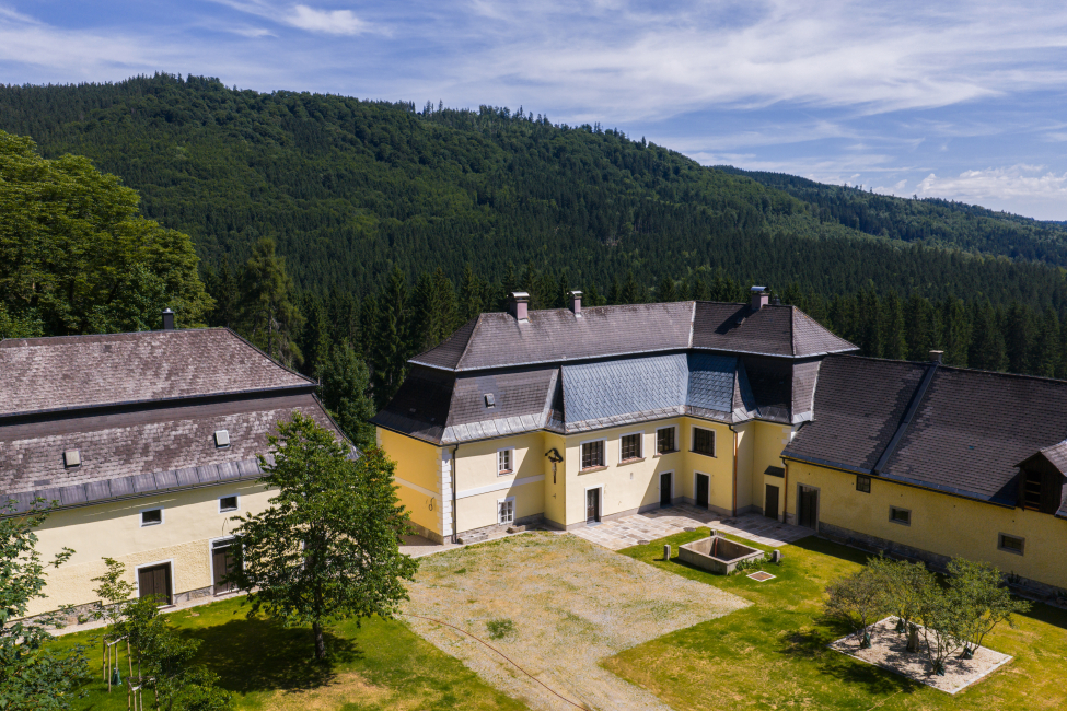 Das Herrenhaus der ehemaligen Gutsbesitzer Freiherren von Hackelberg-Landau wurde 1805 vom damaligen Glashüttenmeister Franz Robl für die Gutsbesitzer als repräsentativer Wohnsitz mit angeschlossenem Maierhof errichtet. Nach einer eben abgeschlossen, aufwendigen und stilgerecht durchgeführten Renovierung steht die großzügige Gutsbesitzer Wohnung mit ihren rund 440 m² Wohnfläche zur Vermietung. Auf 2 Stockwerken stehen 2, auch getrennt begehbare Wohnbereiche, zur Bewohnung. Wie den dem Exposé angefügten Grundrissplänen zu entnehmen, verfügt jedes der beiden Stockwerke über 3 Schlafzimmer mit je 2 Bädern, je einer Küche und je einem großen Wohnsalon mit Kachelofen.