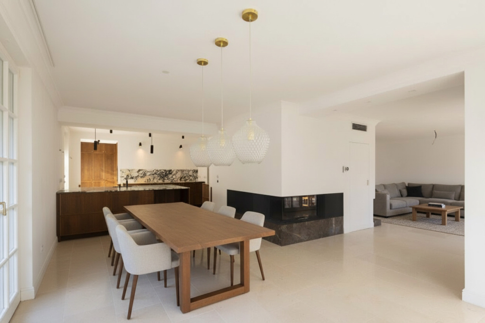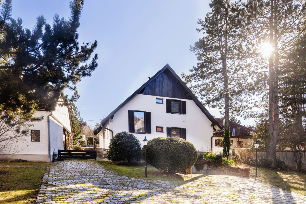 Fliesen, Parkett, Steinboden, Fußbodenheizung, Kamin, Einbauküche, Wohnküche / offene Küche, Südbalkon / -terrasse, Bad mit Fenster, Badewanne, Dusche, Garage, Klimaanlage, Luftwärmepumpe, Getrennte Toiletten, Gäste-WC, Massiv, Doppel- / Mehrfachverglasung, Grünblick