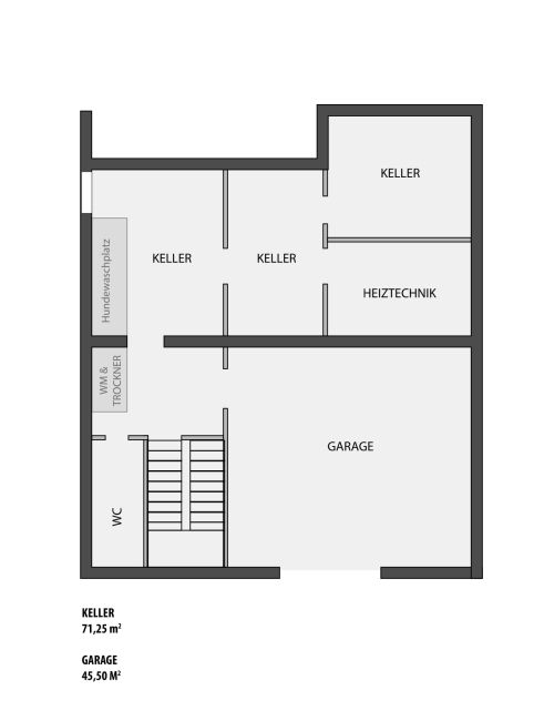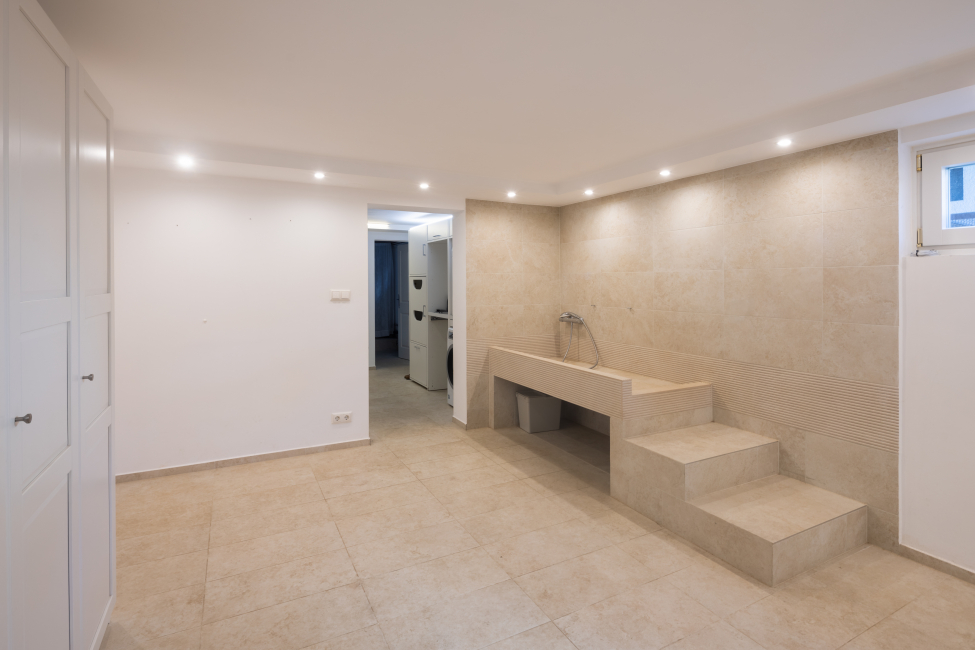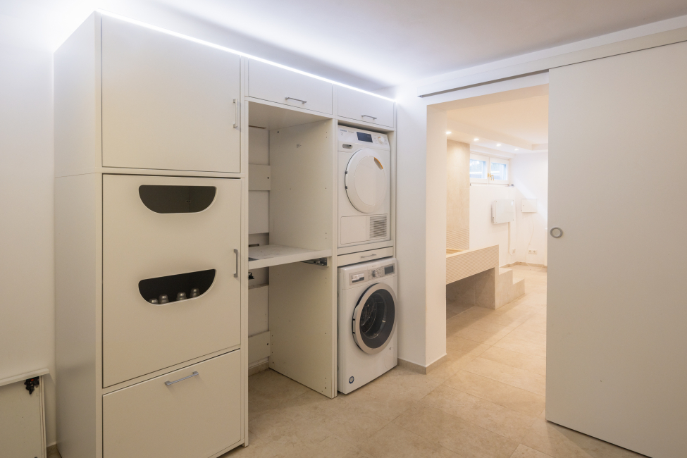 Der Keller wurde vollständig ausgebaut und wird mittels Infrarotpaneelen je nach Bedarf beheizt. Aktuell befindet sich hier eine Hundewaschanlage im Hobbyraum, ein Verbau mit Waschmaschine und Trockner befindet sich im Vorraum des Kellers. Ein weiterer großer Abstellraum bietet viel Stauraum.