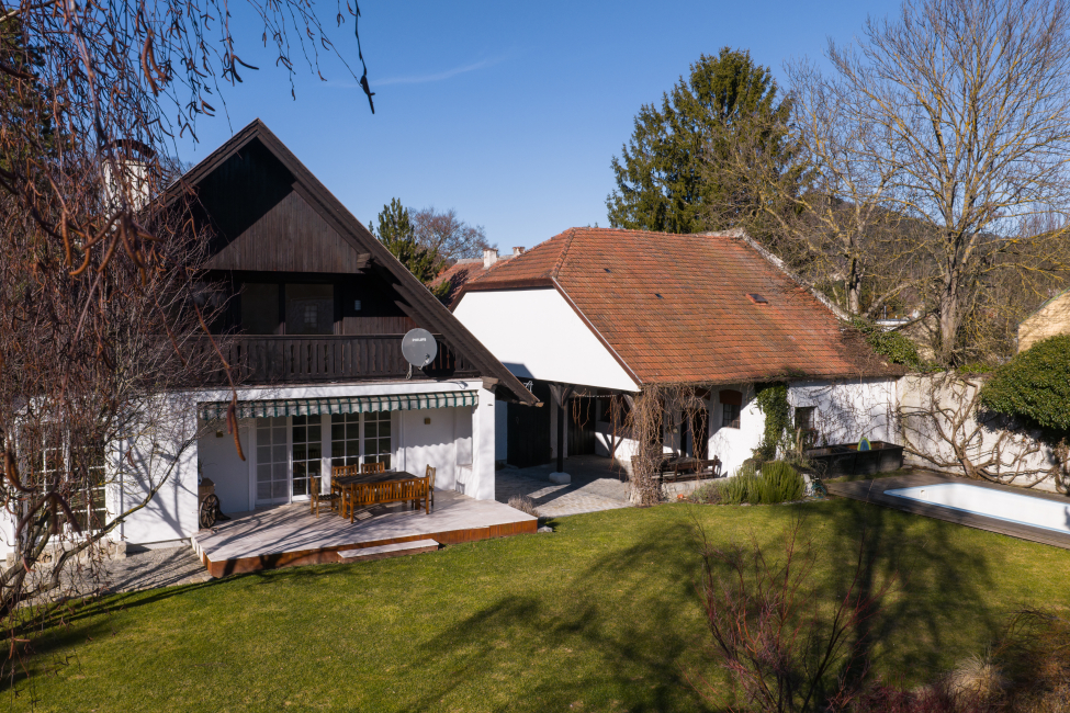 Das Highlight: Die neue Küche besteht aus einer repräsentativen Küche im Wohnbereich eingebettet, sowie einem abgetrennten Teil, der viel Stauraum und sämtliche neuen, modernen Geräte verbirgt. Ein diskretes Kochen und anrichten wird daher wunderbar ermöglicht! Das Obergeschoss ist mit einem hochwertigen Parkettboden ausgestattet. Das moderne Badezimmer bietet eine Designerbadewanne, sowie eine großzügige Dusche mit zwei Waschbecken und einem WC.